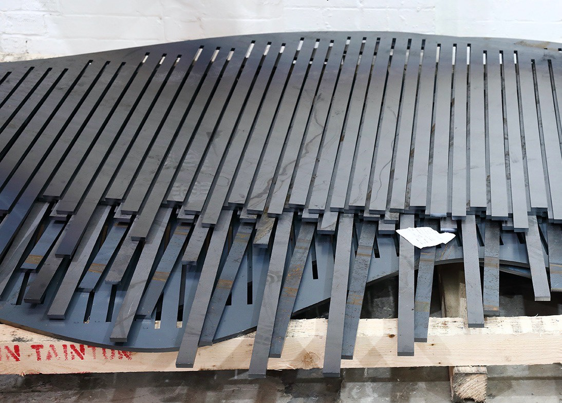 Tonkin Liu proposed the laser-cut skeletal comb structural technique. The plate is