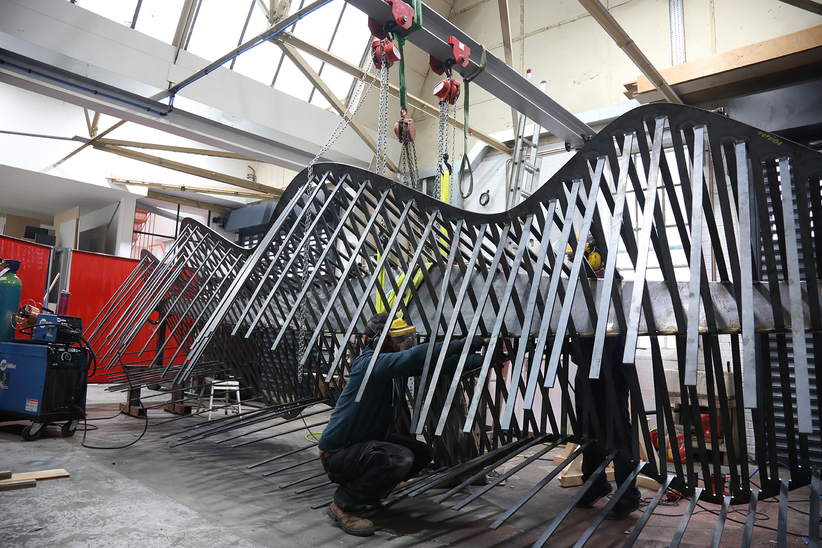 edge of the central beam, utilising the whole surface of the 10mm steel sheet. This